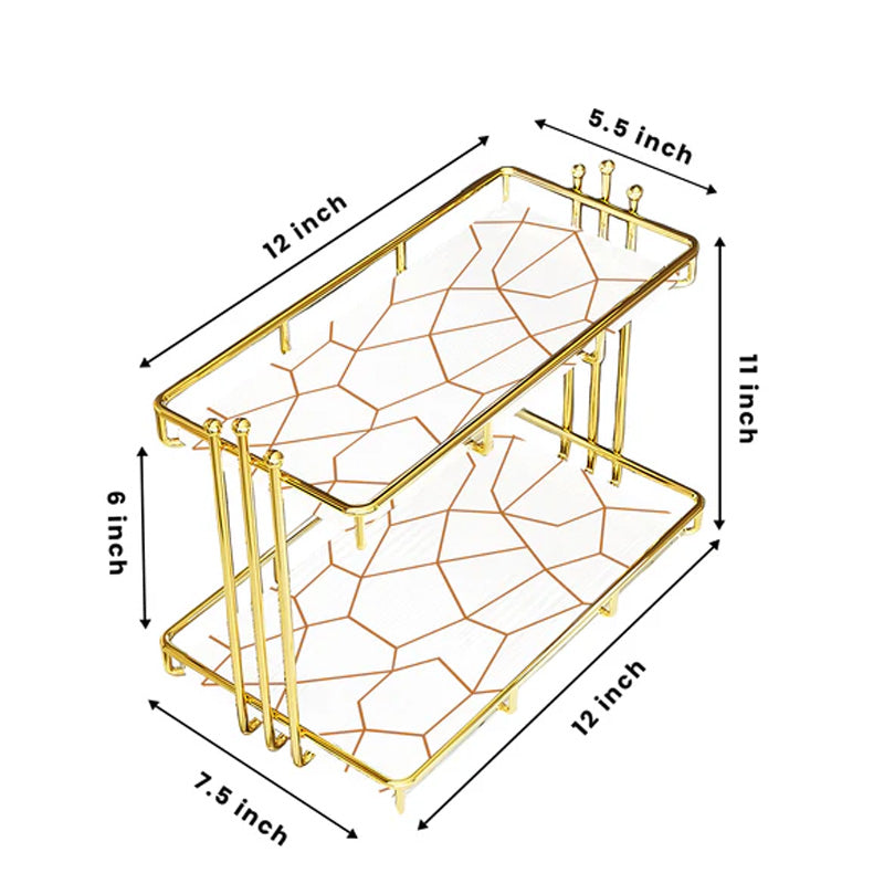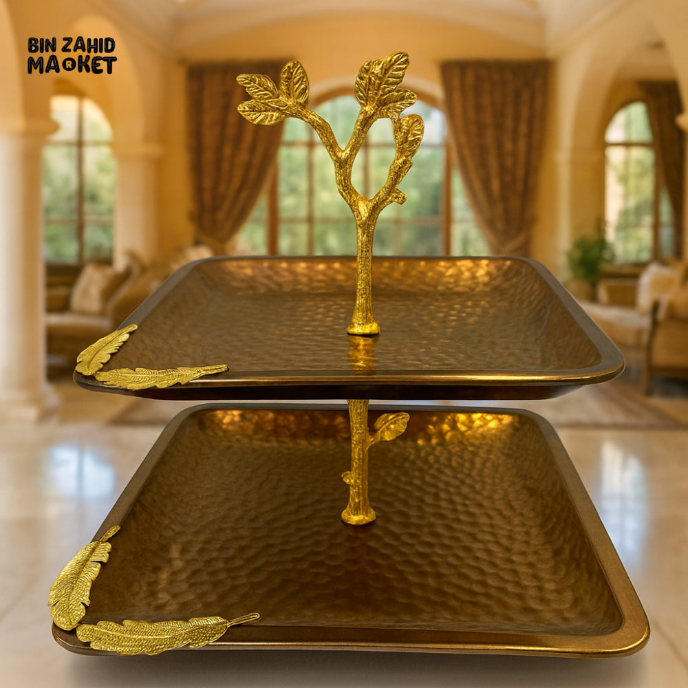 2-TIER LUXURY BRONZE SERVING TRAY WITH GOLD LEAF HANDLE – HIGHLY ELEGANT VILLA DECOR - SQUARE