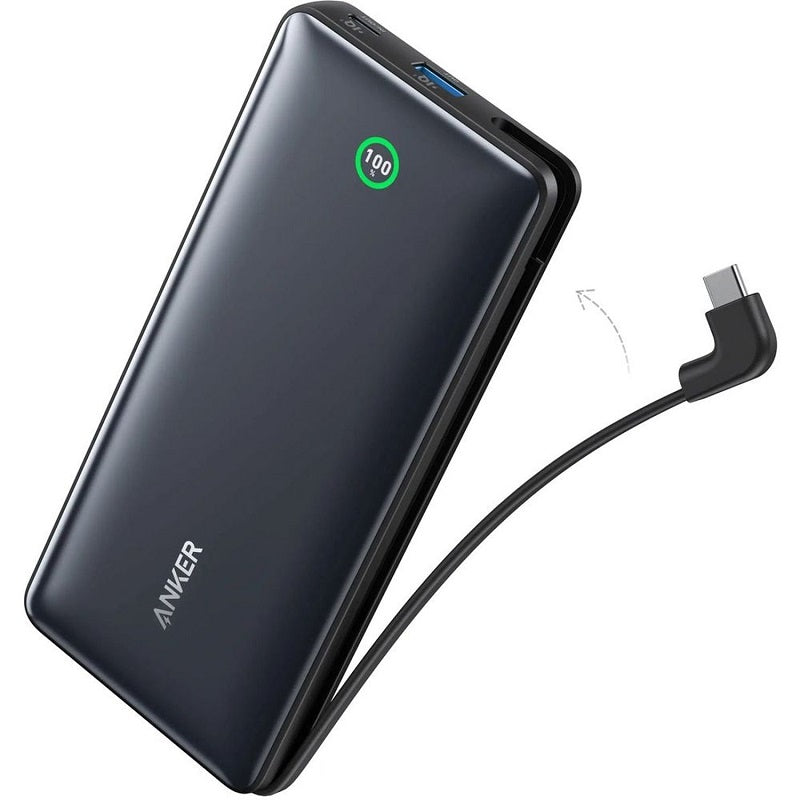 Anker Zolo Power Bank (20K Built-In USB-C and Lightning Cable) Black