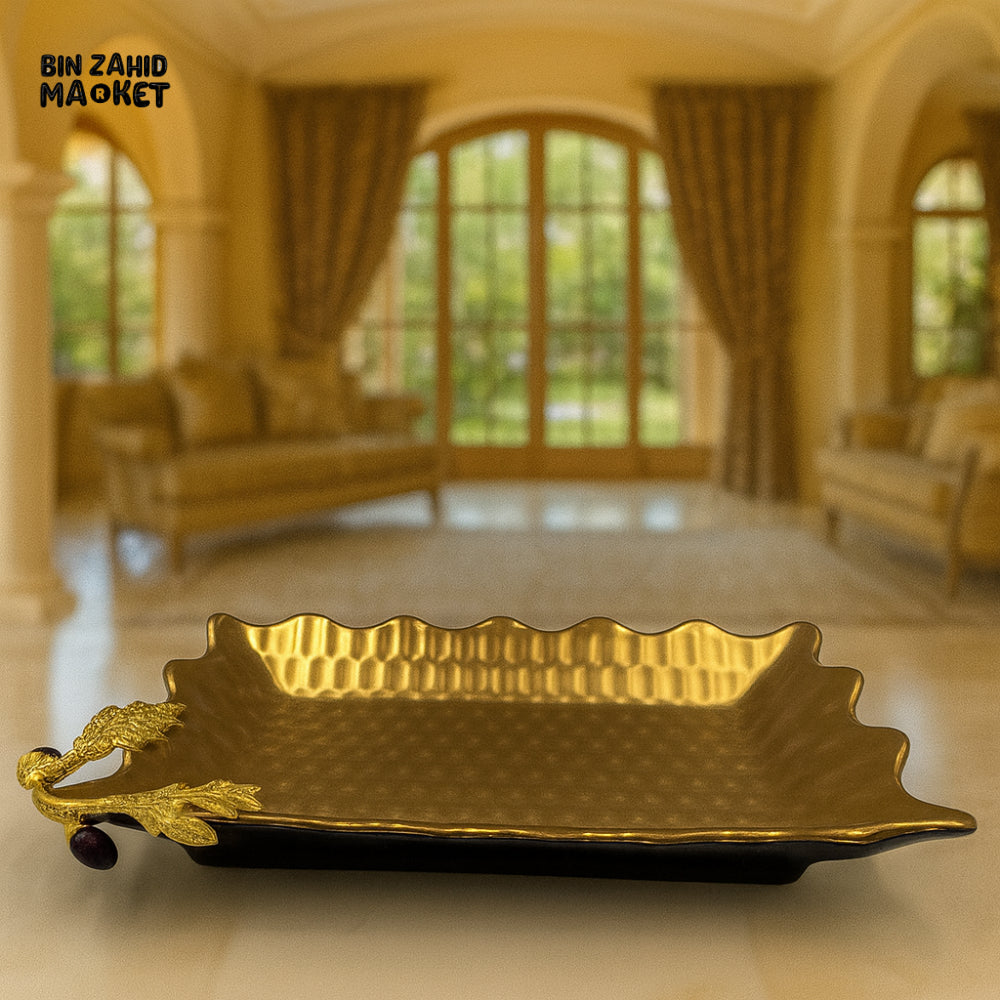 SERVING DISH WITH GOLD ROSE DETAIL – LUXURY KITCHEN TABLETOP PLATTER - 12 M10-W