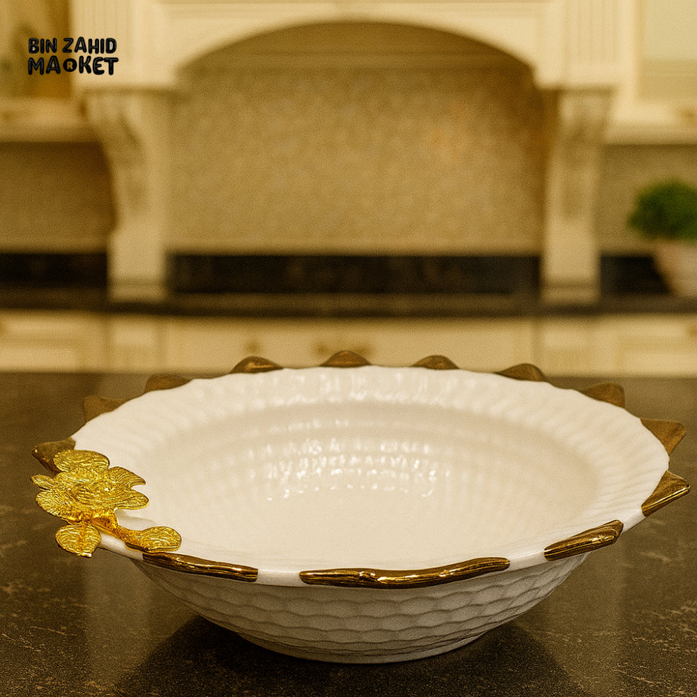 SERVING DISH WITH GOLD ROSE DETAIL – LUXURY KITCHEN TABLETOP PLATTER - 12 M12-W