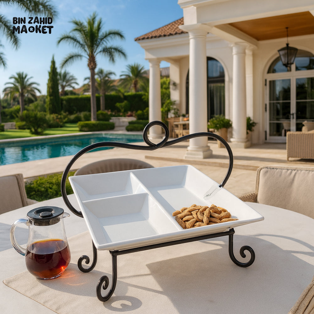 SYMPHONY ES3854 SQUARE DIVIDER PLATE WITH STAND – SECTIONED CERAMIC SERVING TRAY