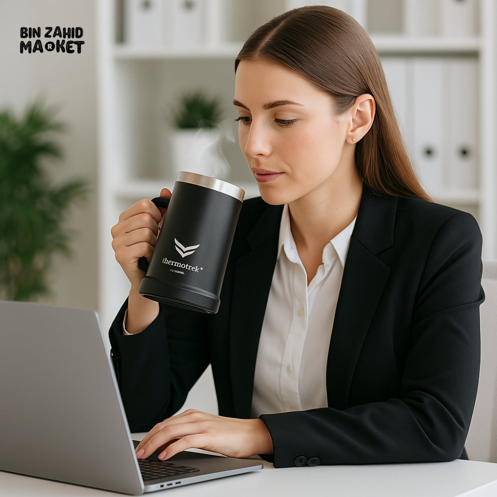 THERMOTREK STAINLESS STEEL INSULATED MUG WITH HANDLE - 24 OZ 710ML BLACK