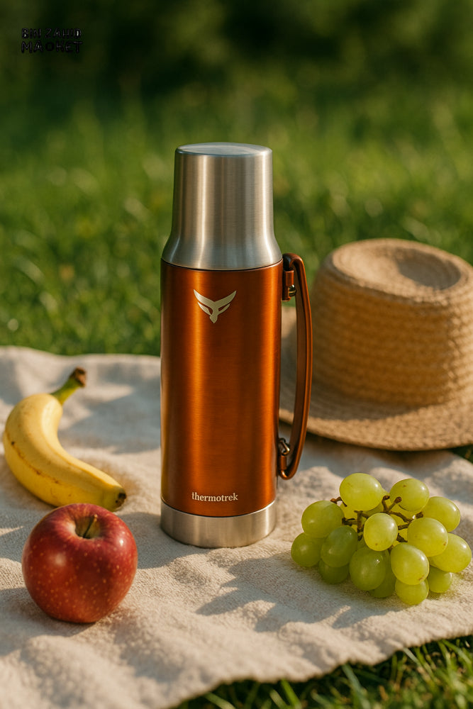 THERMOTREK STAINLESS STEEL INSULATED THERMOS WITH HANDLE - 33-8 OZ 1000ML COPPER ORANGE