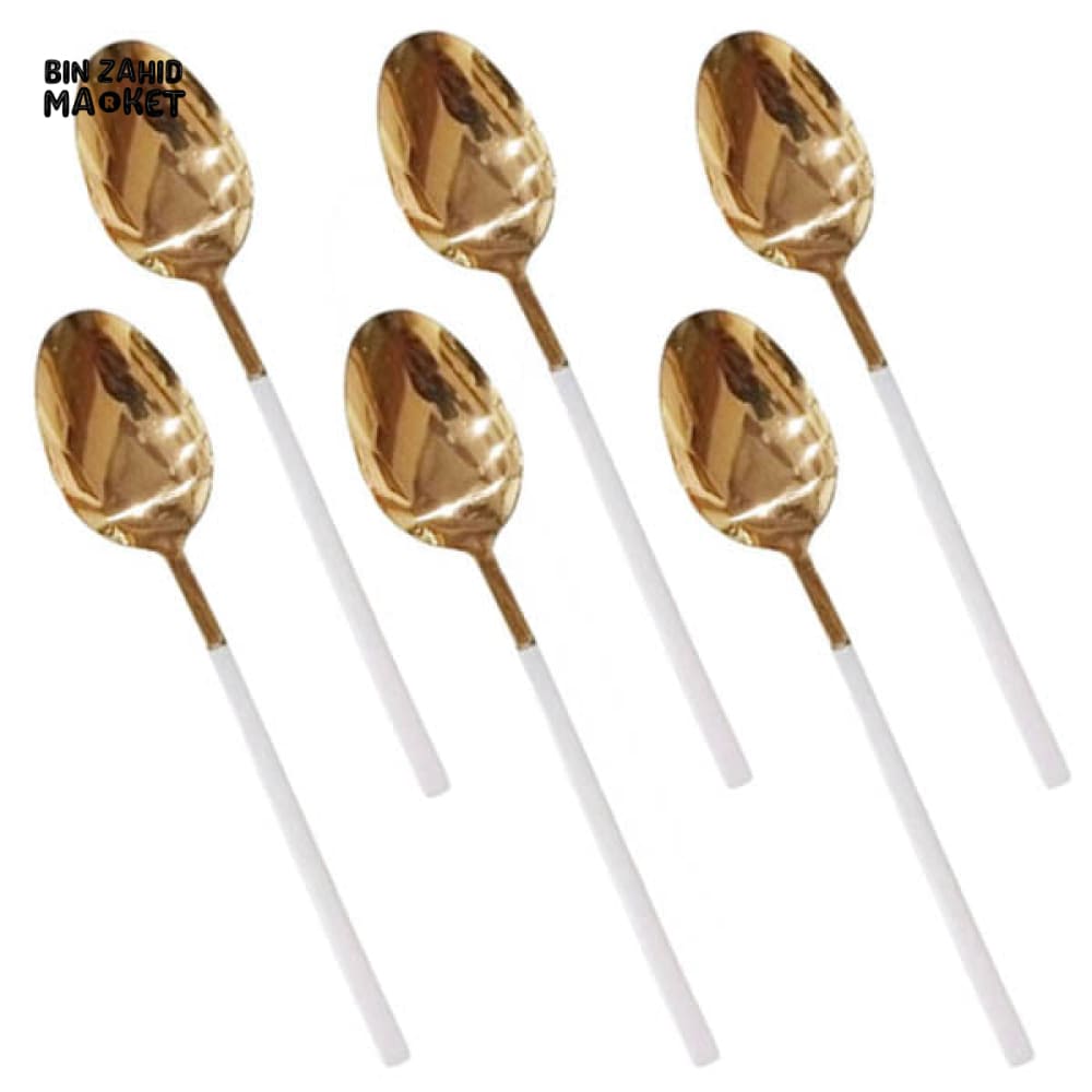 WHITE AND GOLD 6 PIECE - TEA SPOON SET CC-003