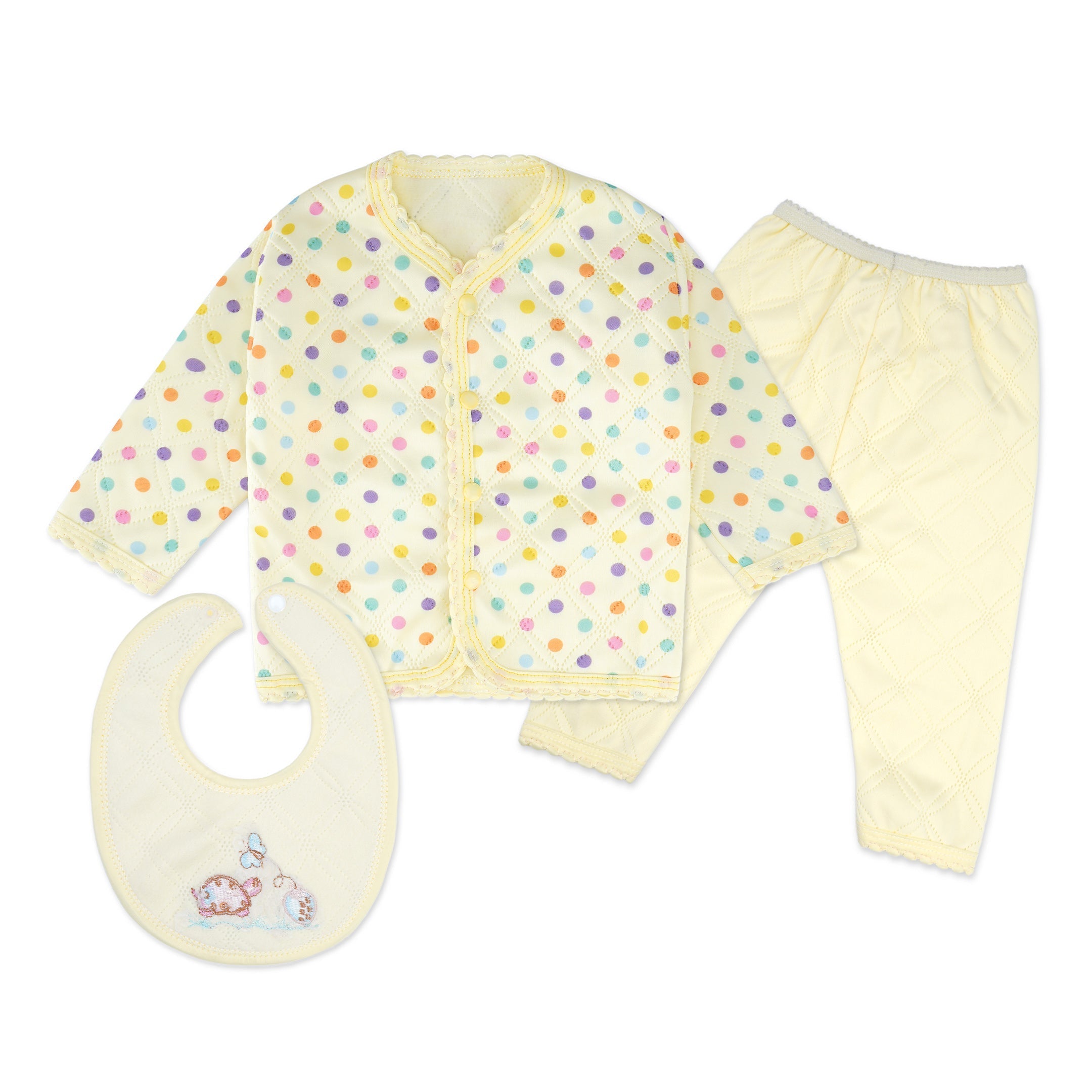 Baby 3Pcs Pajama Set Multicolor Polka Dots Yellow - Sunshine