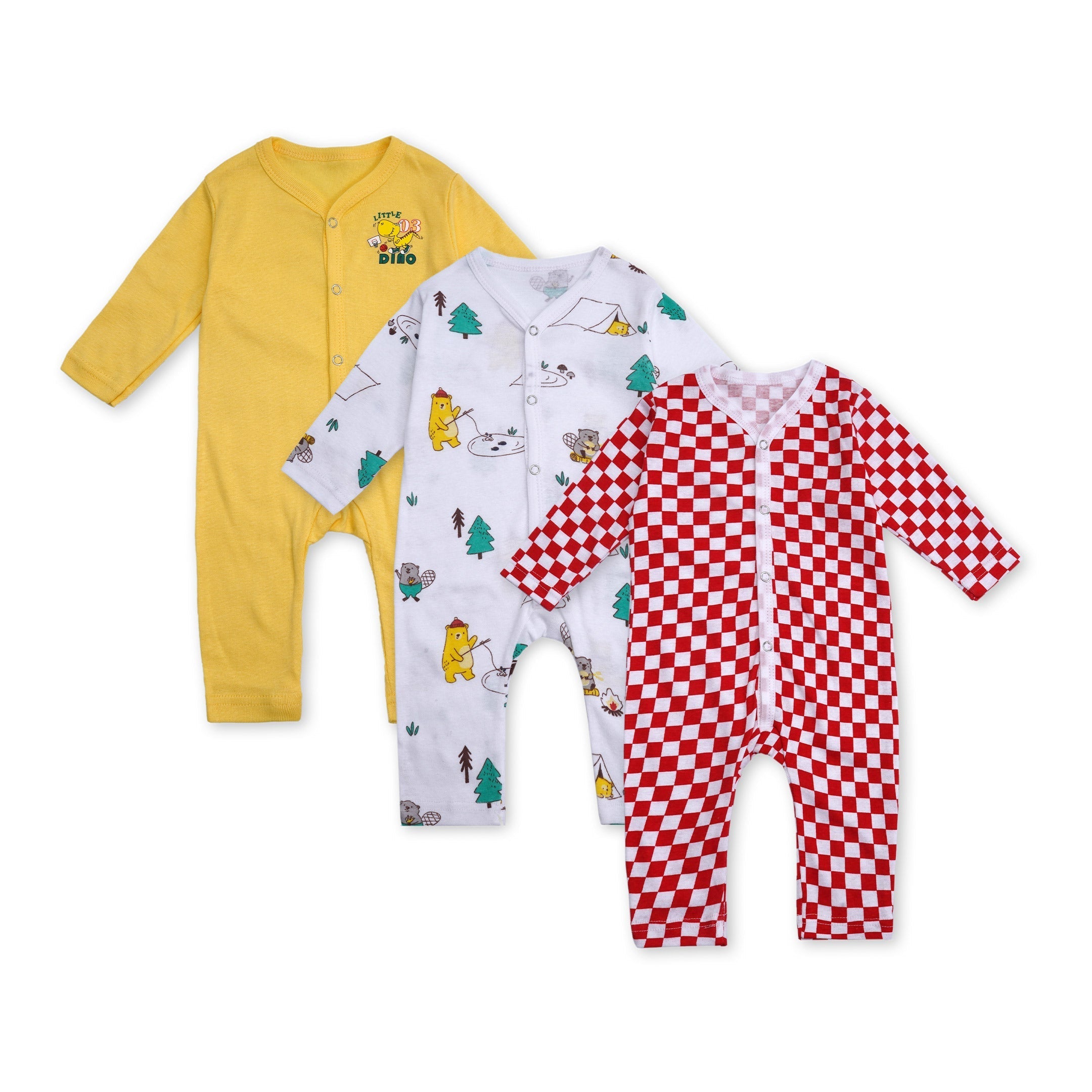 Baby 3Pcs Sleepsuit Check Red - Sunshine