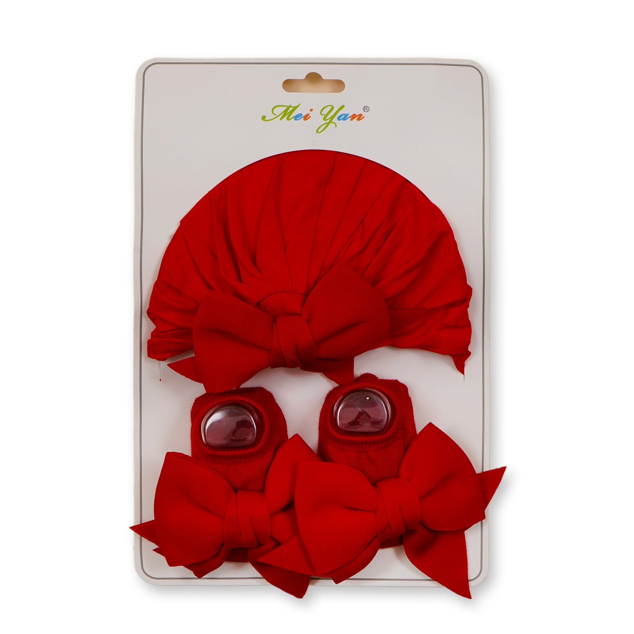 Baby 2Pcs Turban Cap & Booties Set Red - Sunshine