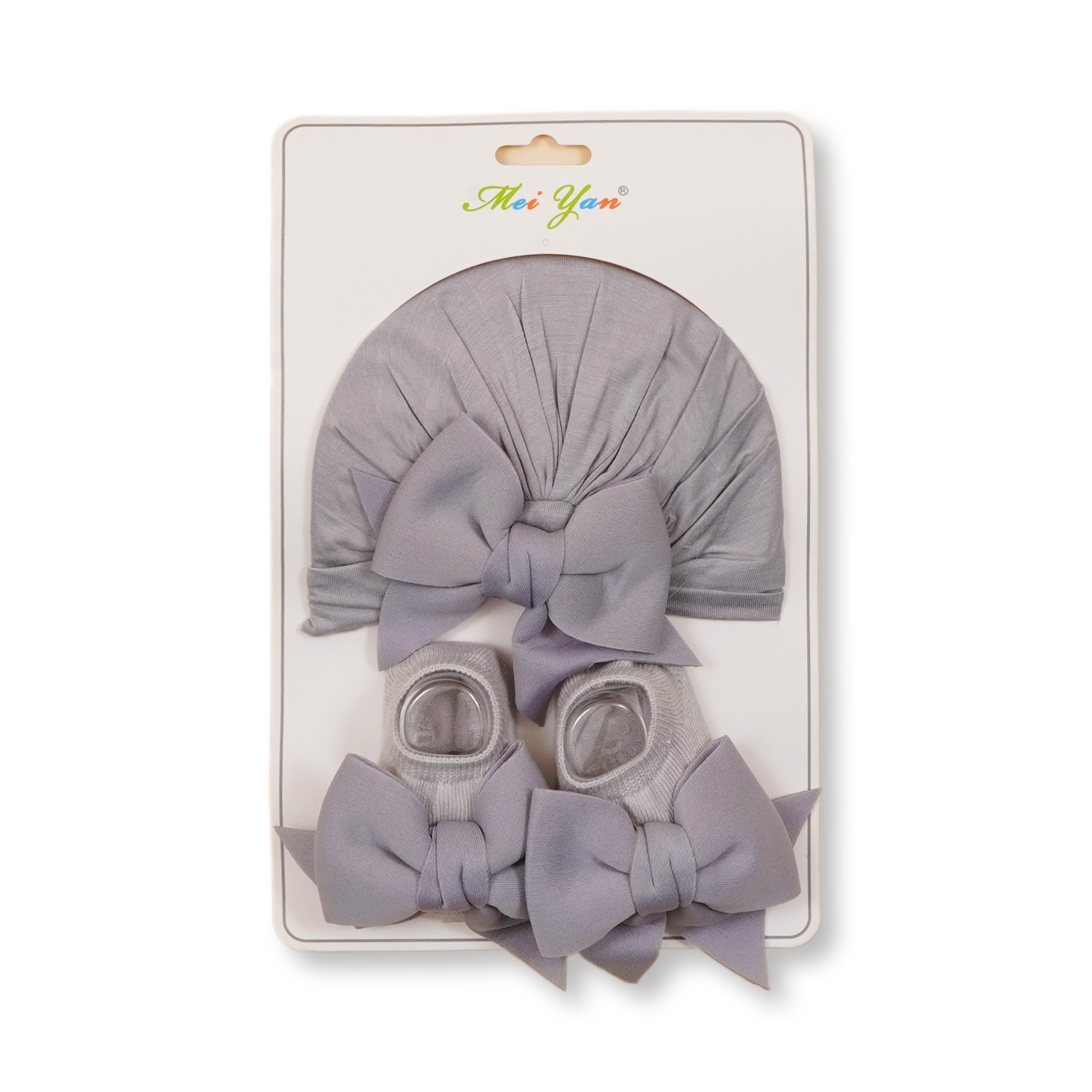 Baby 2Pcs Turban Cap & Booties Set Grey - Sunshine