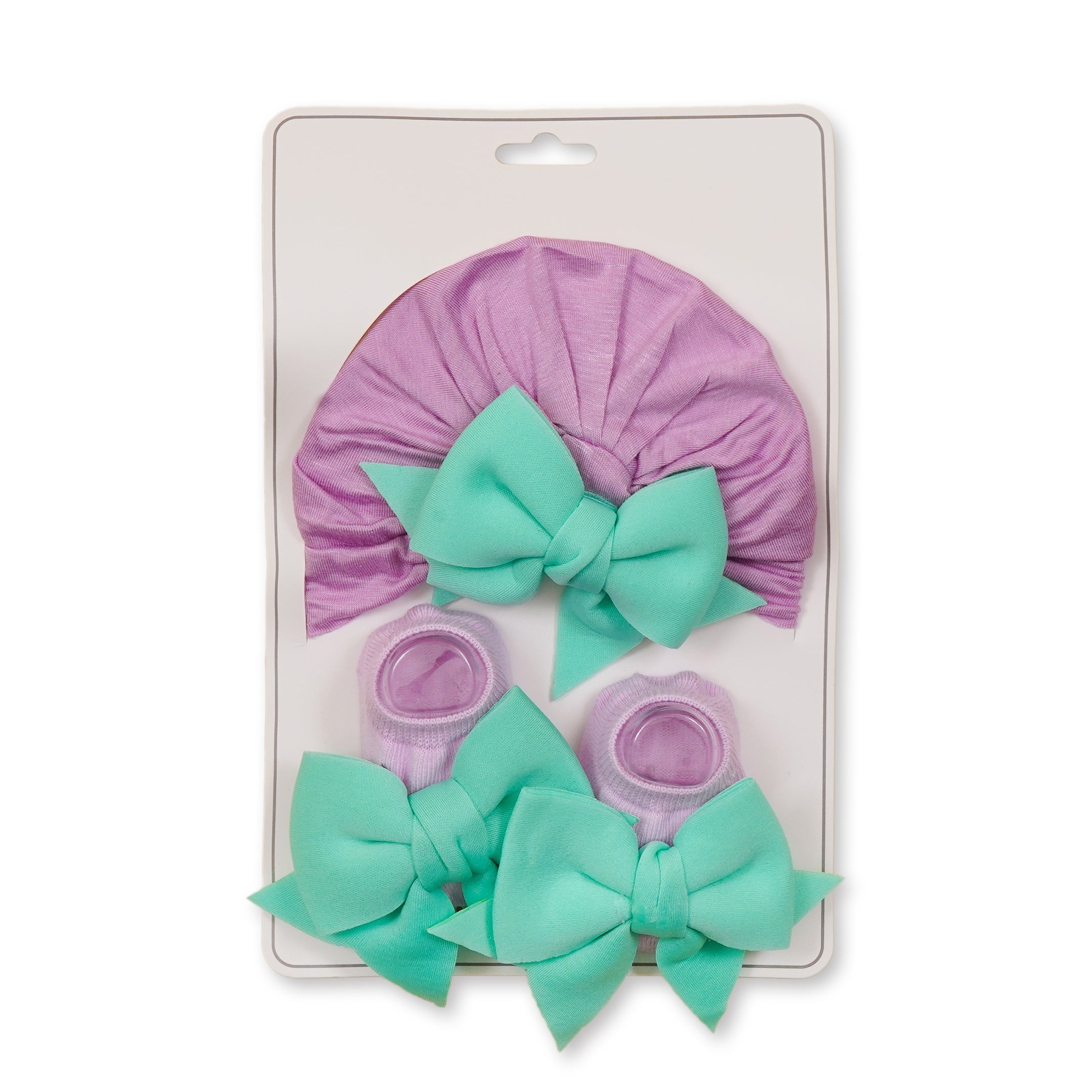 Baby 2Pcs Turban Cap & Booties Set Purple - Sunshine