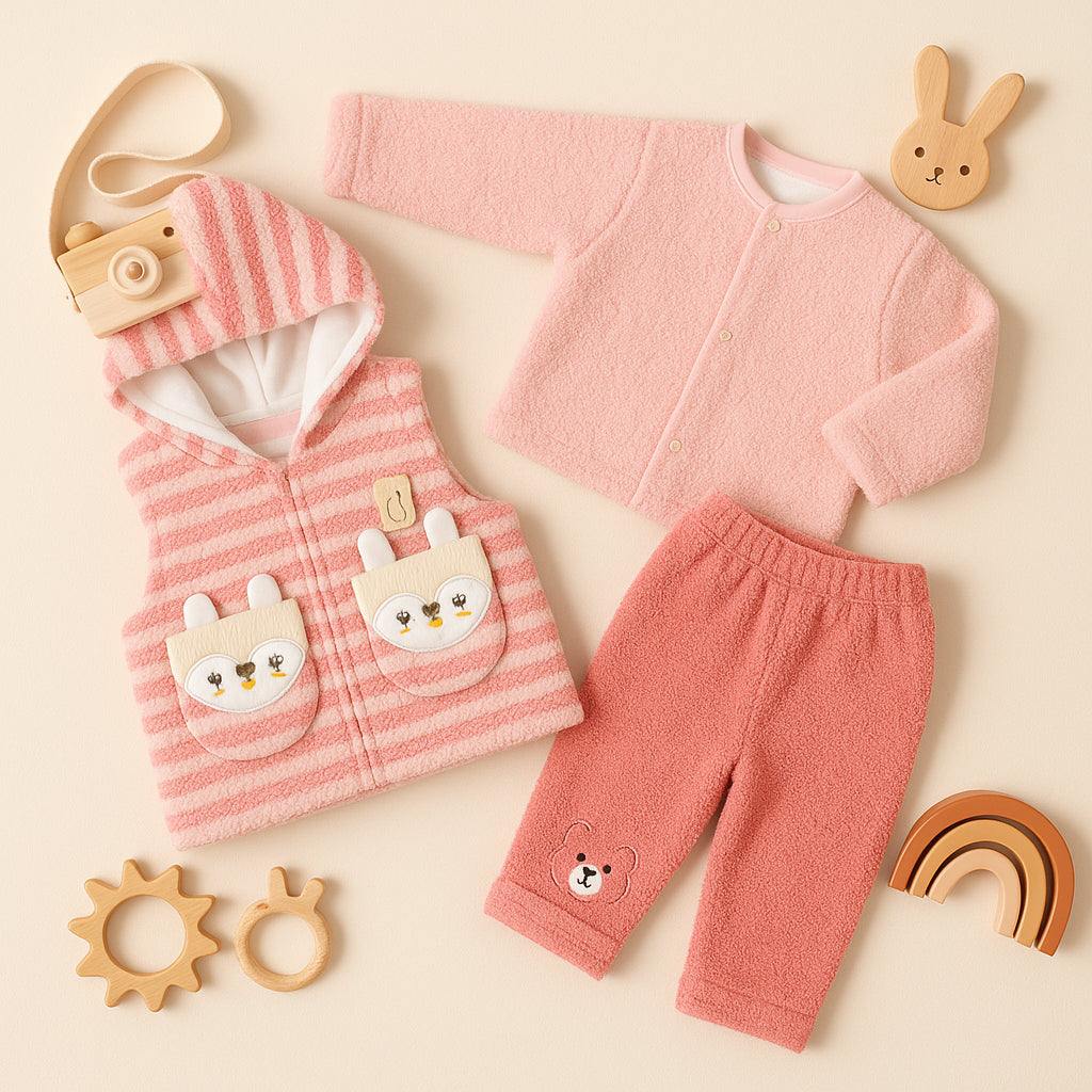 Baby 3Pcs Fleece Gift Set Bear Peach (6-12 Months) - Sunshine