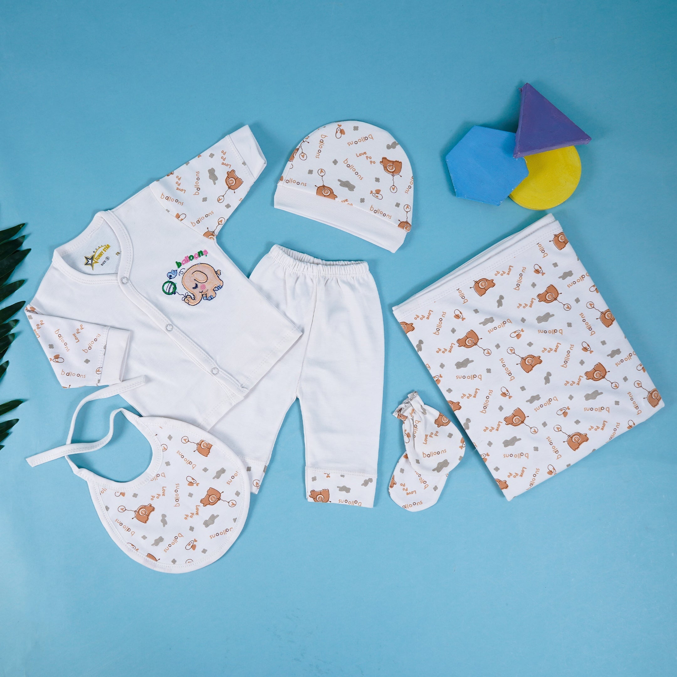 Baby 6Pcs Newborn Cotton Gift Set Elephant White - Sunshine