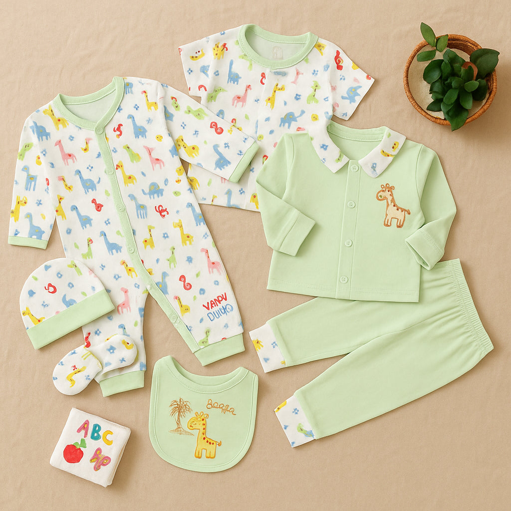 Baby 7Pcs Newborn Gift Set Giraffe Green - Sunshine