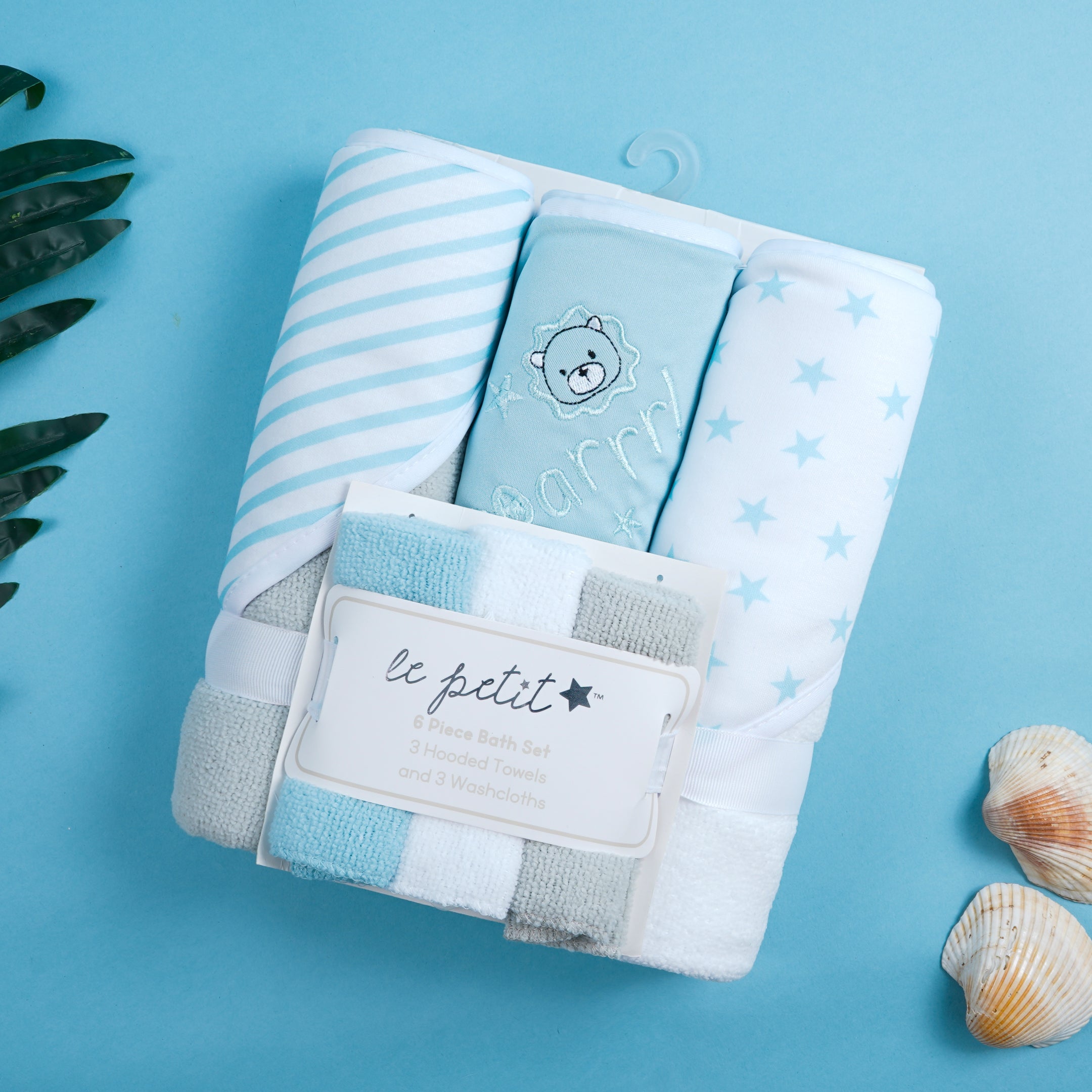 Baby 6Pcs Towels & Washcloths Set Blue - Sunshine