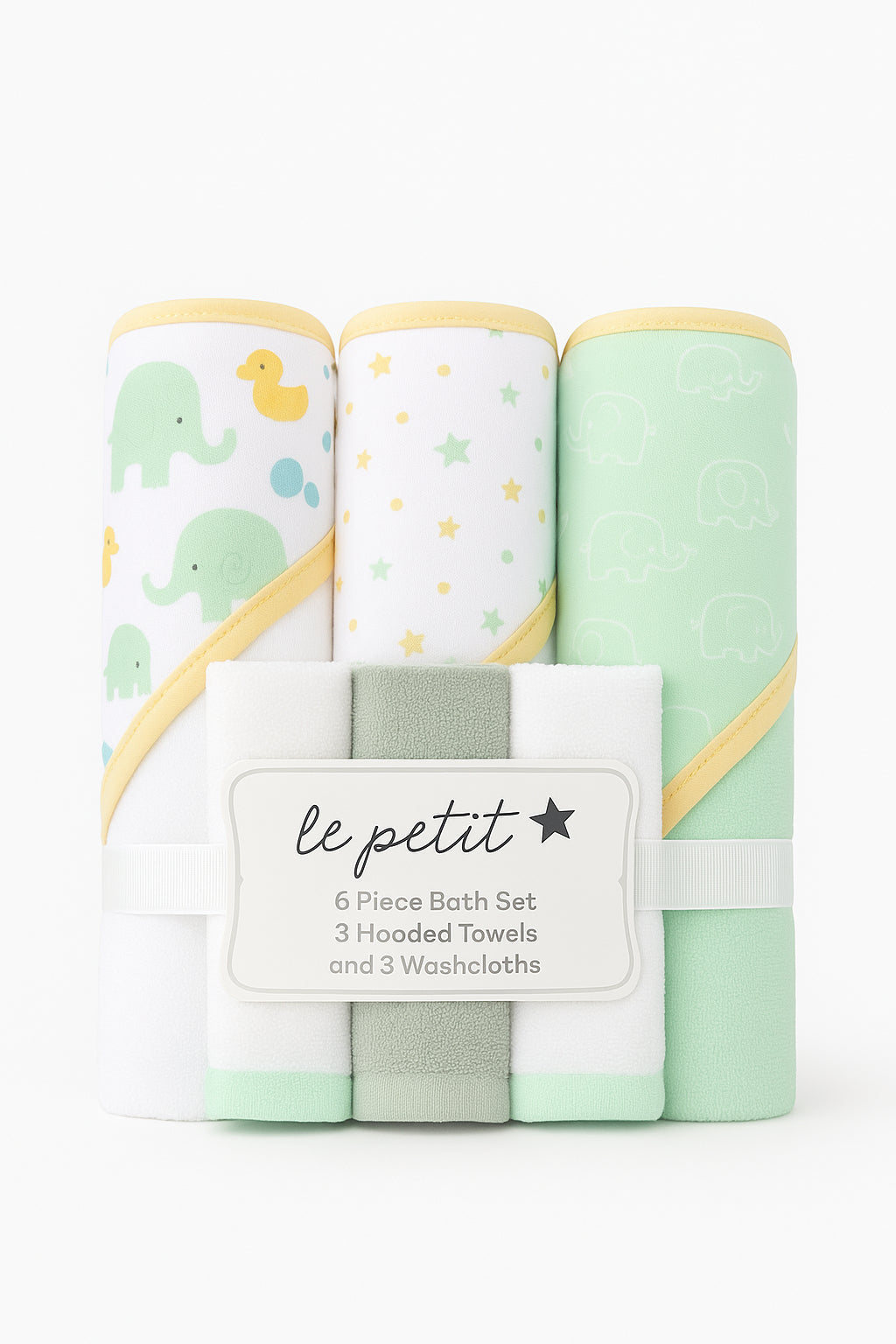 Baby 6Pcs Towels & Washcloths Set Green - Sunshine