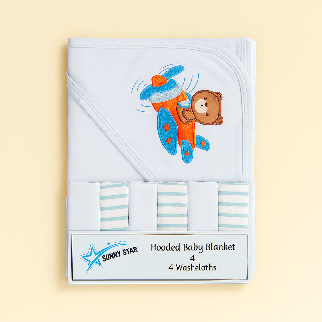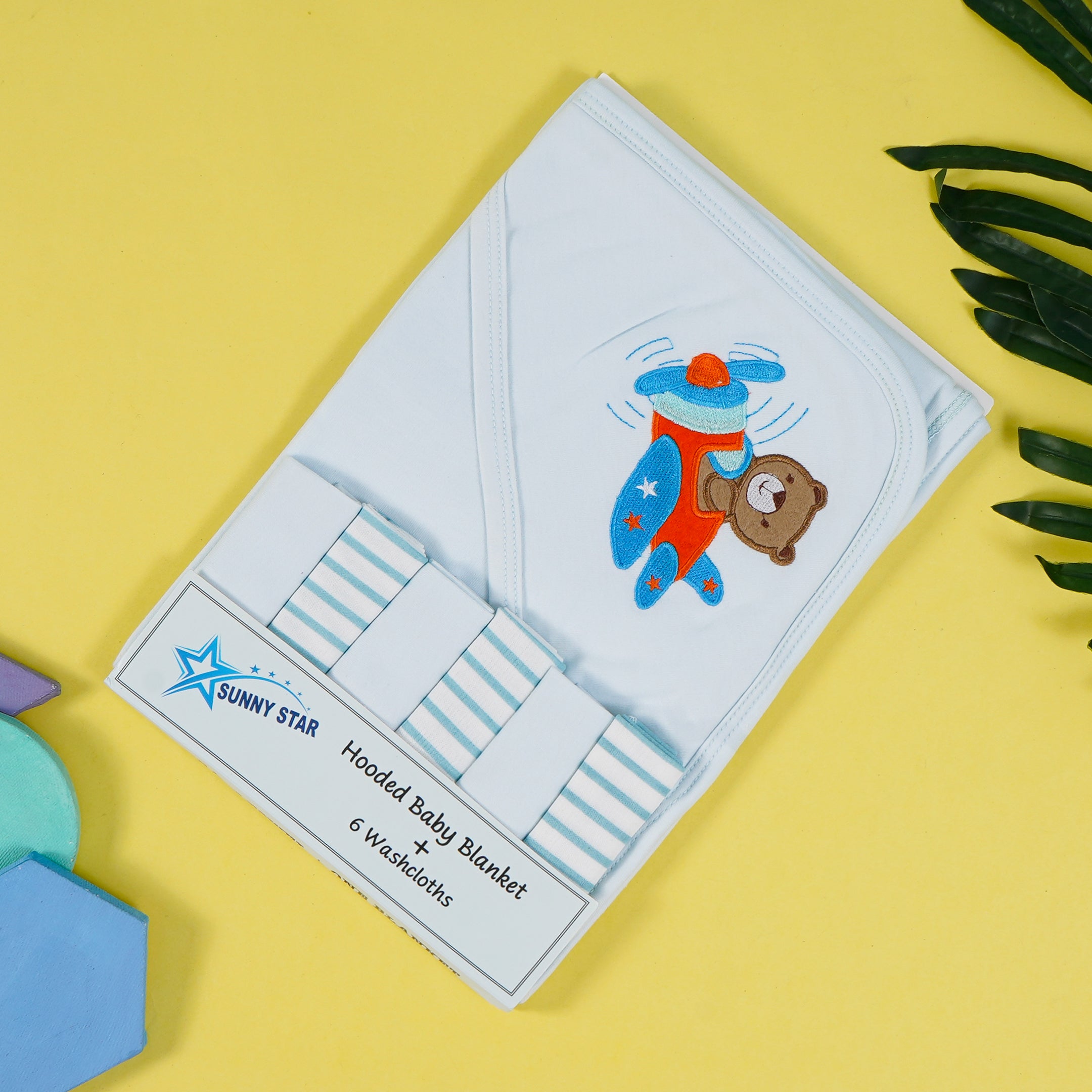 Baby 7Pcs Wrapping Sheet & Washcloths Airplane Blue - Sunshine
