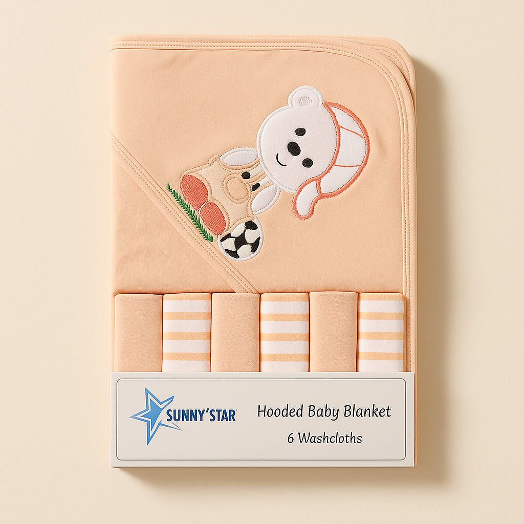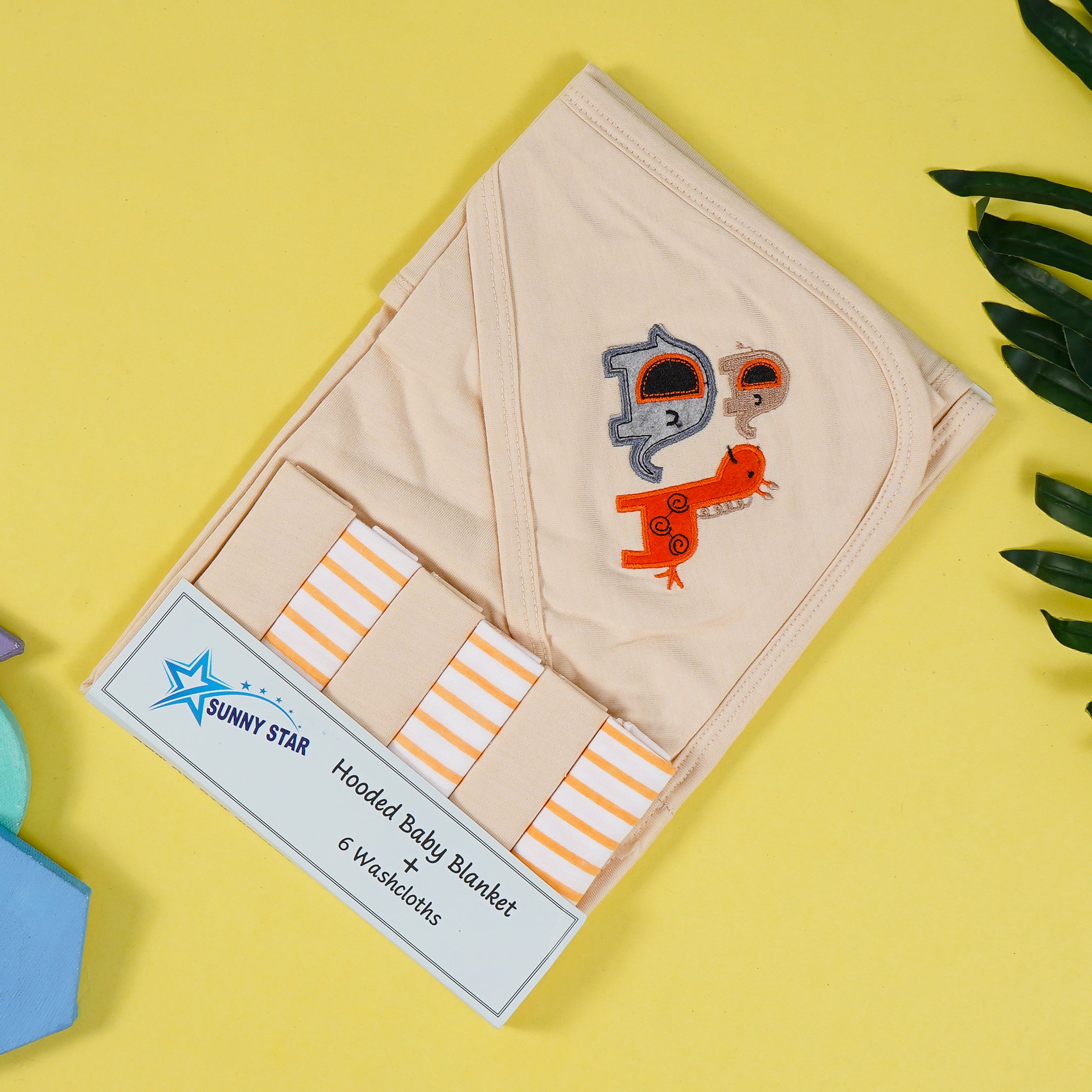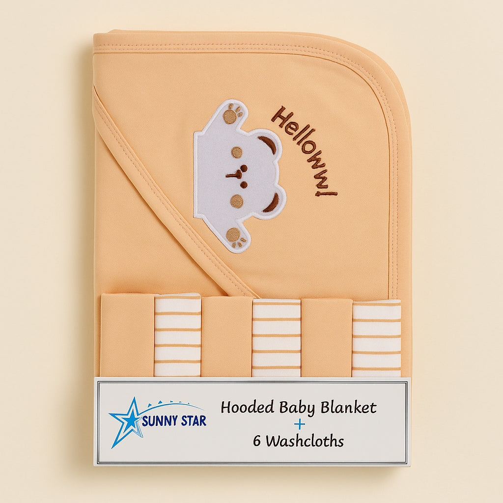 Baby 7Pcs Wrapping Sheet & Washcloths Bear Orange - Sunshine