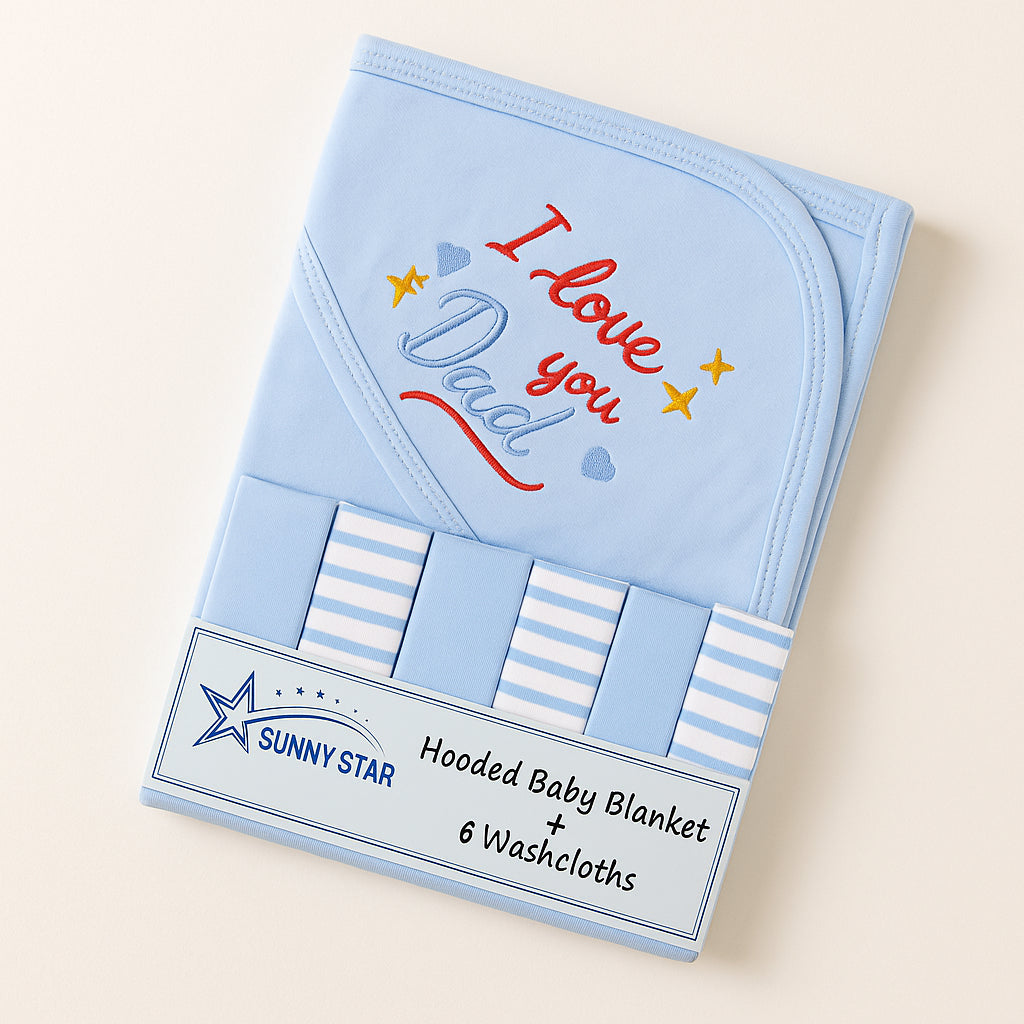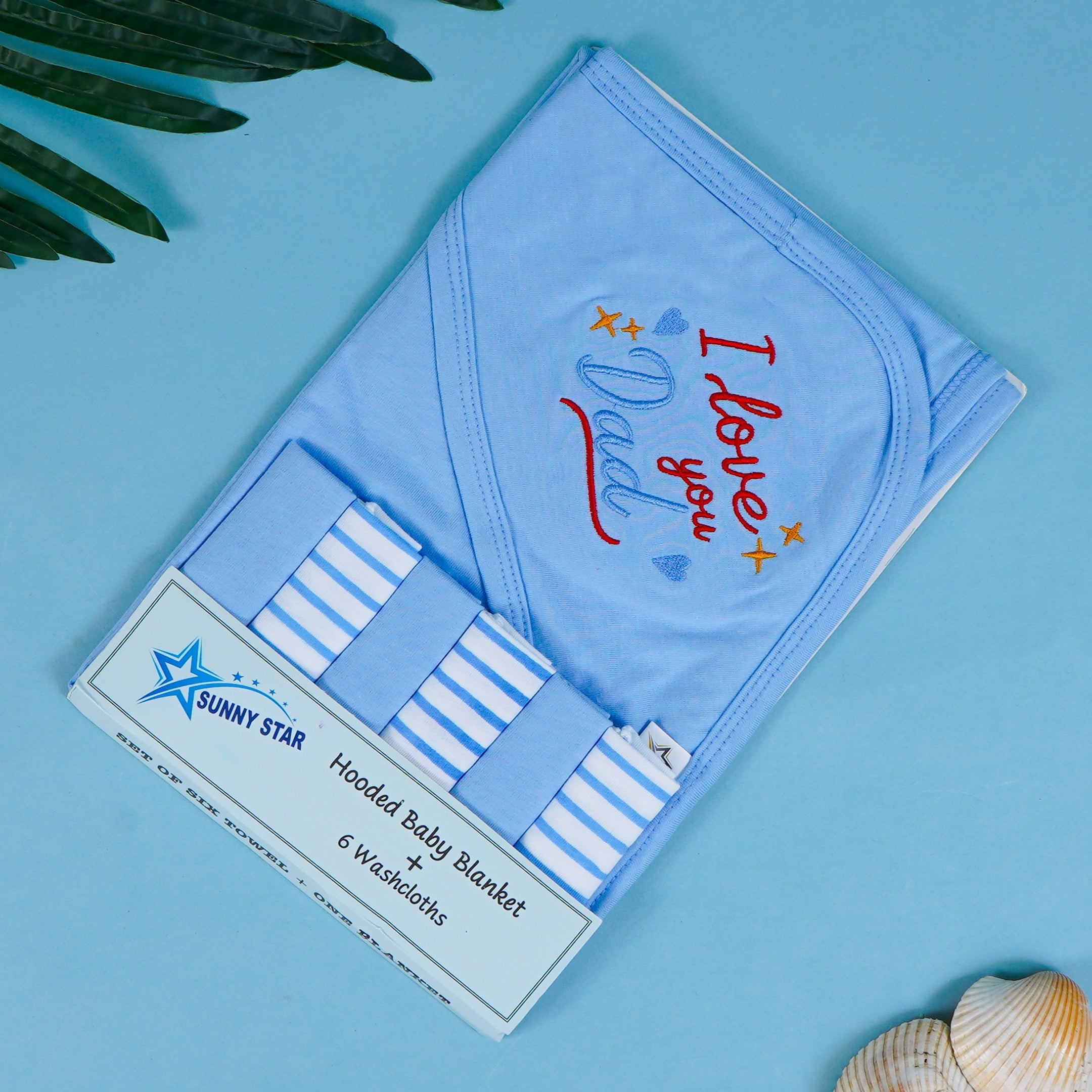 Baby 7Pcs Wrapping Sheet & Washcloths Dad Love Blue - Sunshine