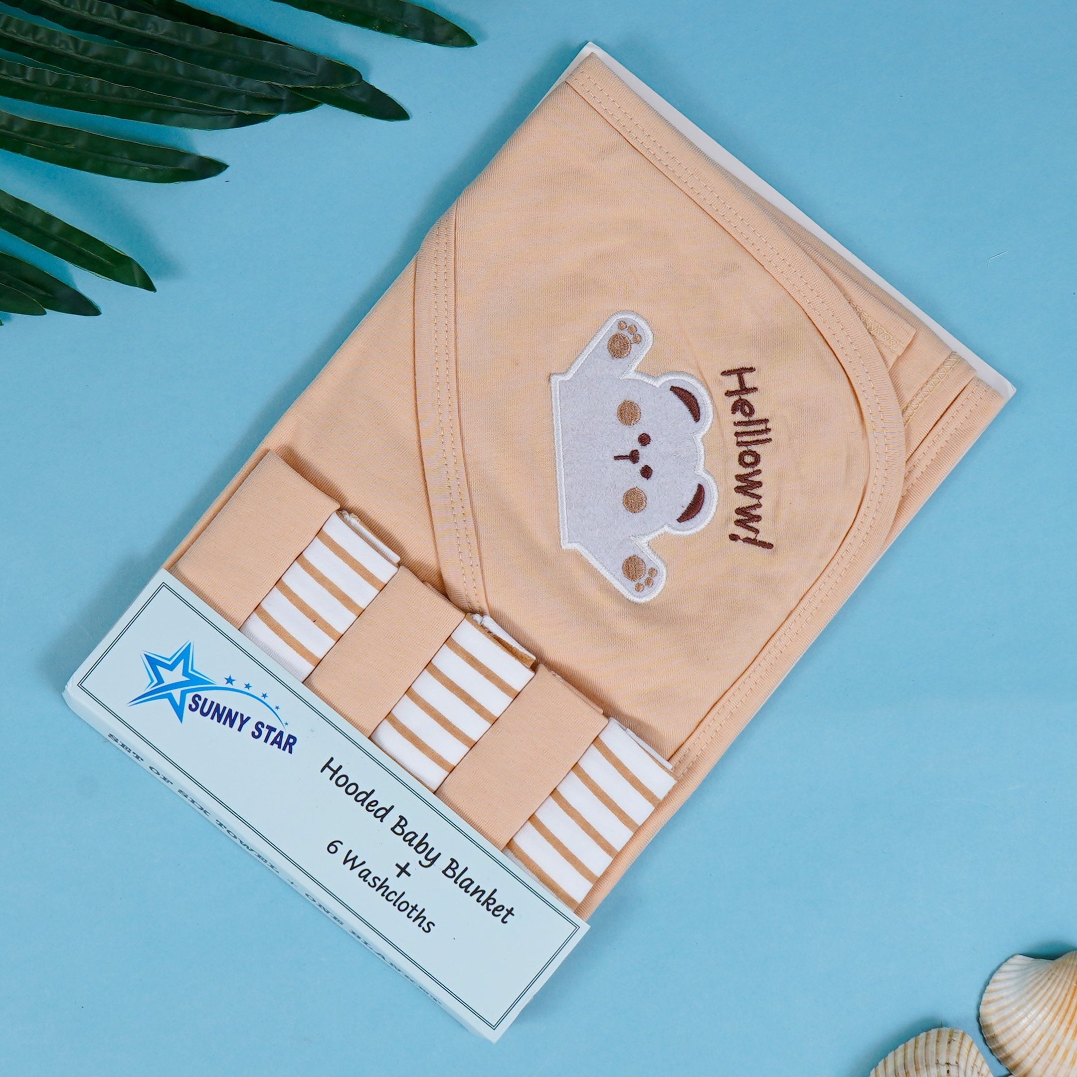 Baby 7Pcs Wrapping Sheet & Washcloths Helloww Bear Beige - Sunshine