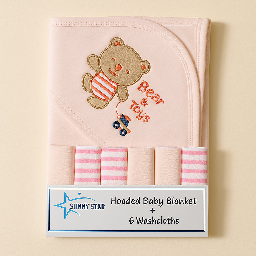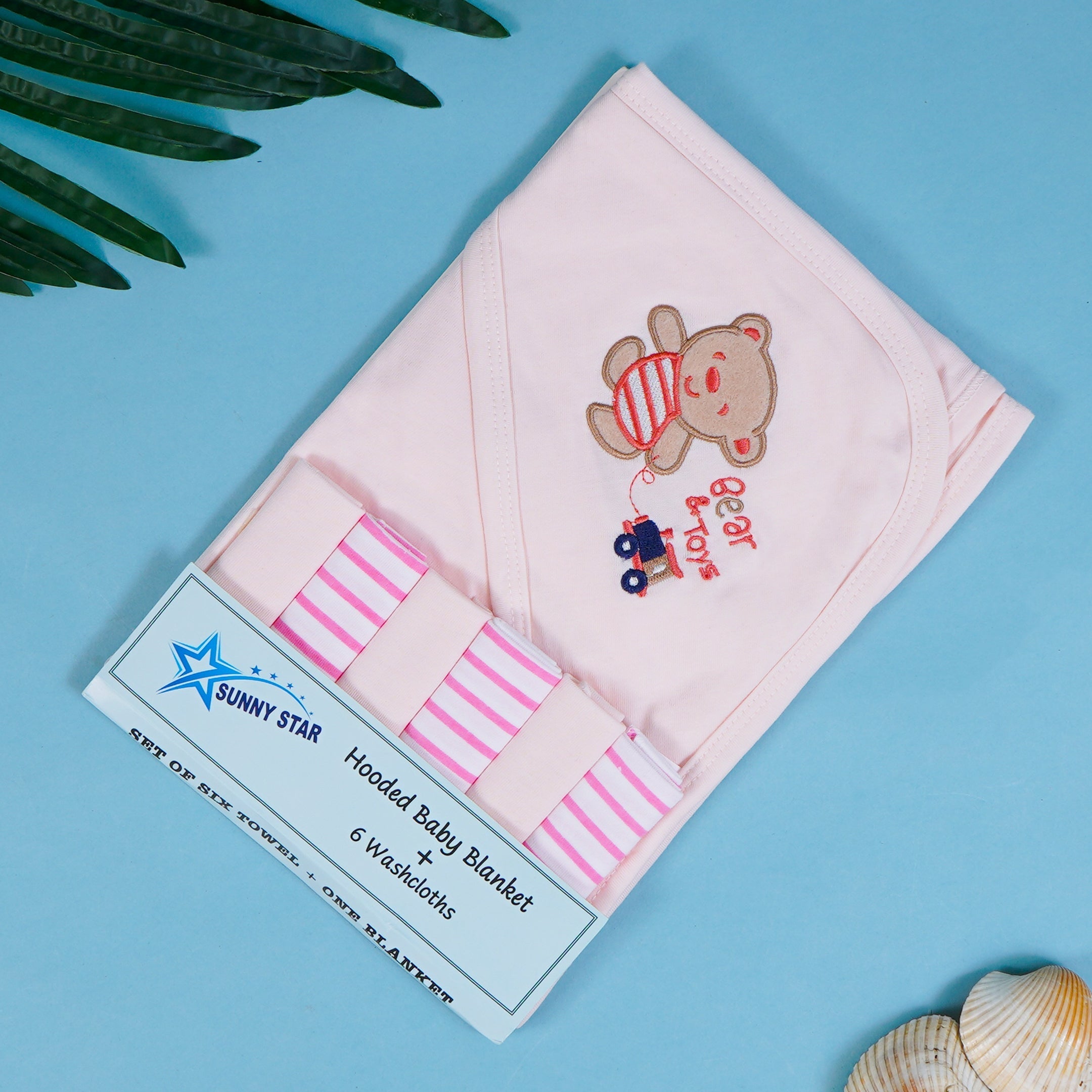 Baby 7Pcs Wrapping Sheet & Washcloths Bear Pink - Sunshine