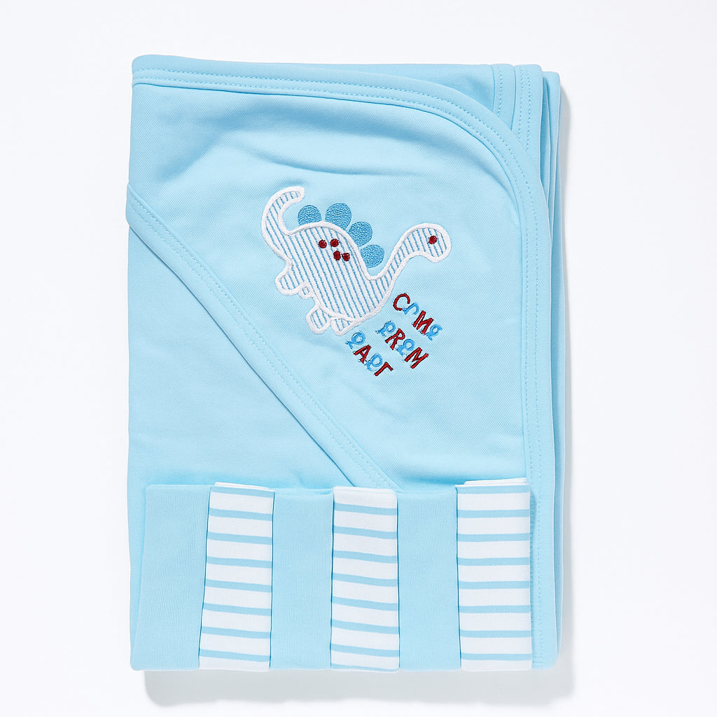 Baby 7Pcs Wrapping Sheet & Washcloths Dino Blue - Sunshine