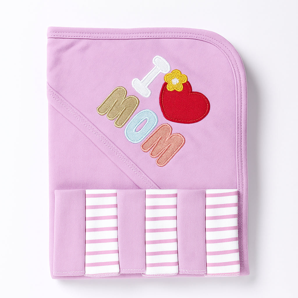 Baby 7Pcs Wrapping Sheet & Washcloths I Love Mom Purple - Sunshine