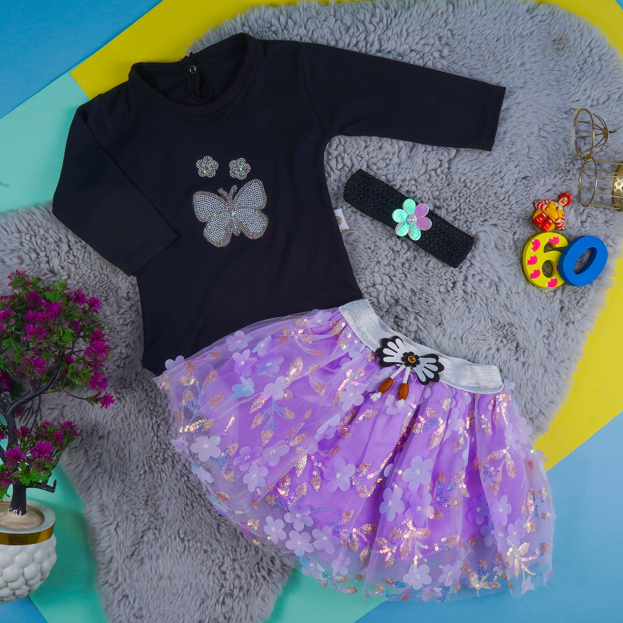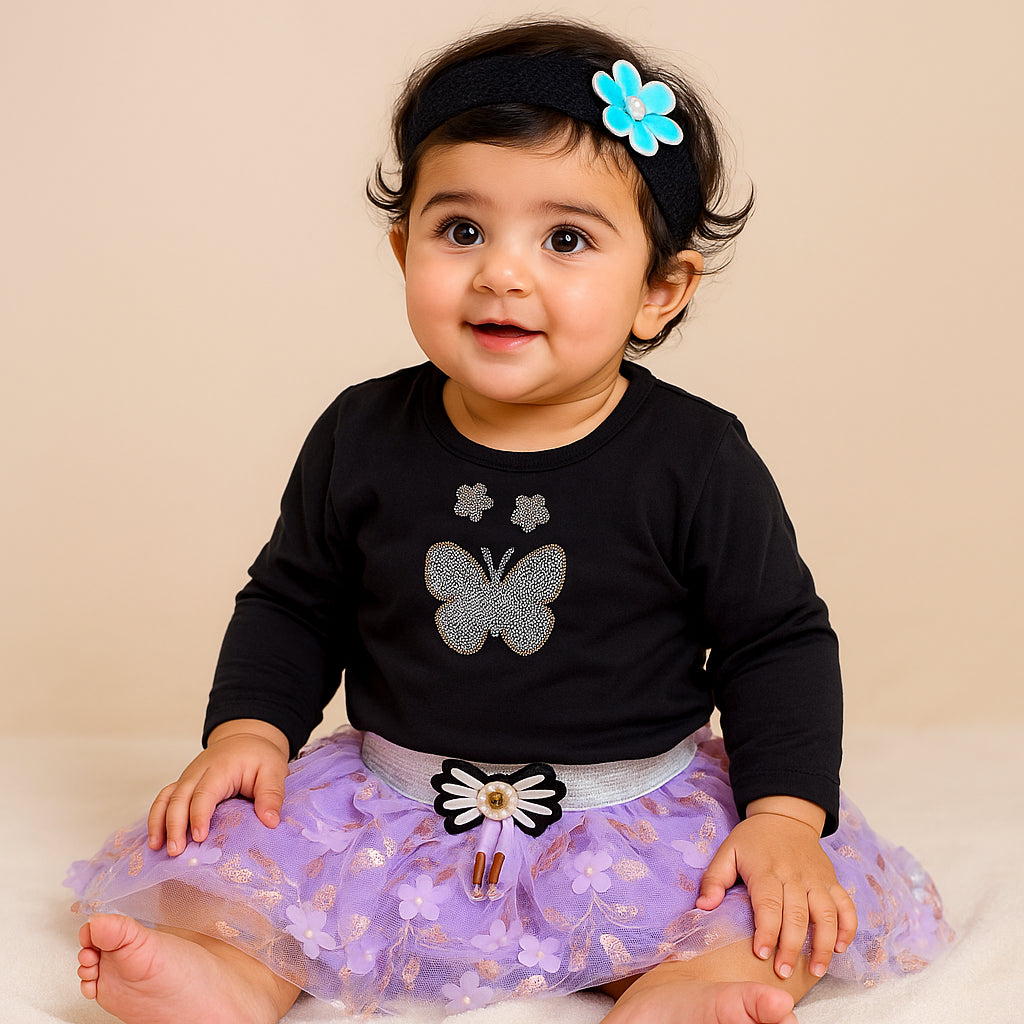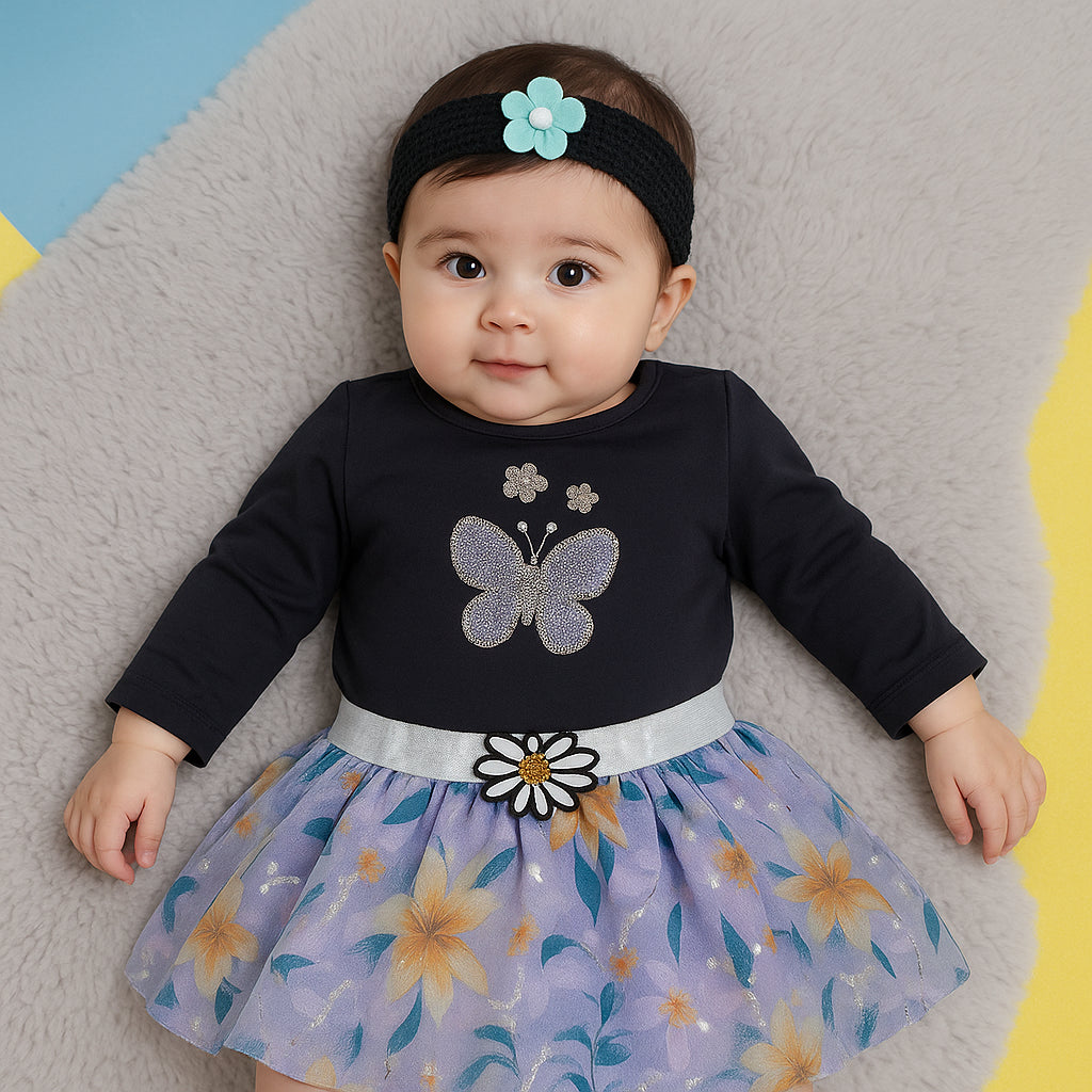 Baby Bodysuit Frock & Headband Set Purple - Sunshine