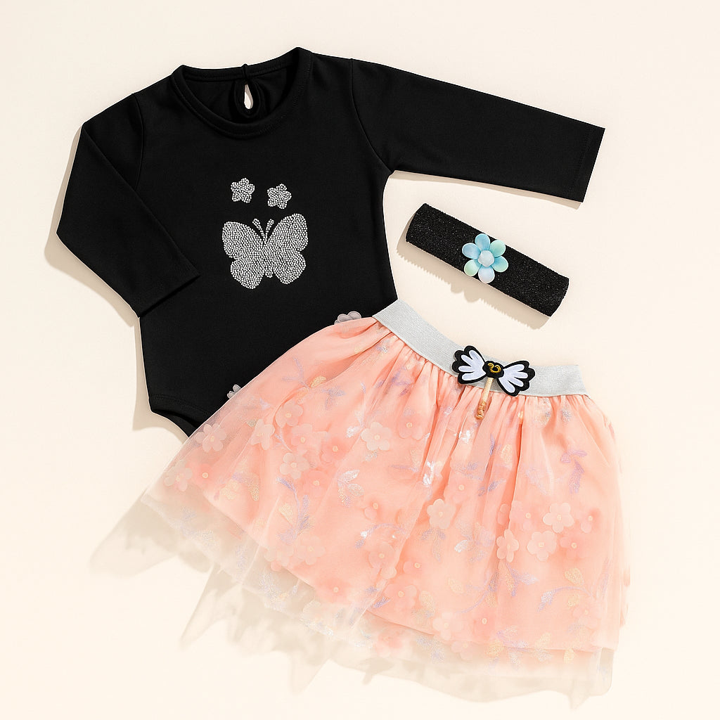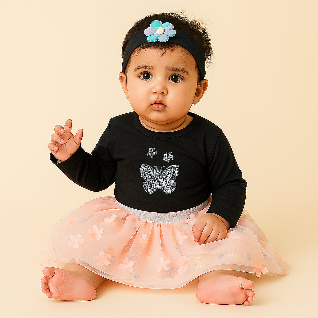 Baby Bodysuit Frock & Headband Set Peach - Sunshine