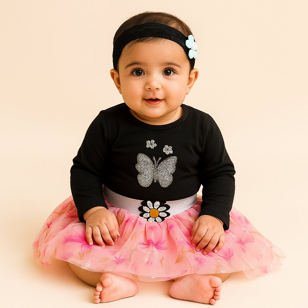 Baby Bodysuit Frock & Headband Set Baby Pink - Sunshine