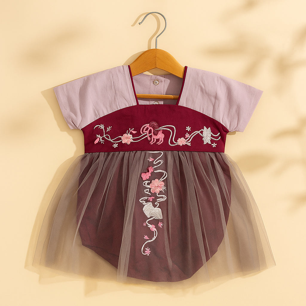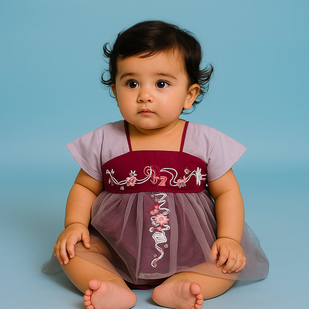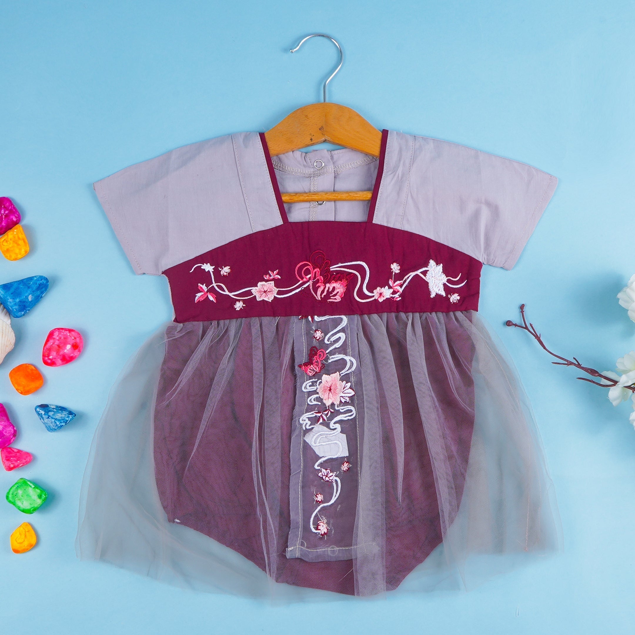 Baby Bodysuit Frock Grey & Maroon - Sunshine