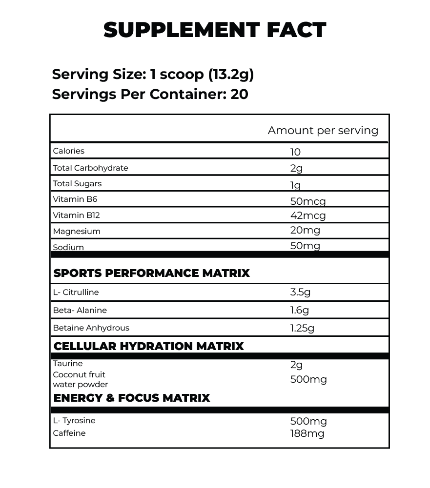The special formula and carefully dosed L-Citrulline concentration are known to provide increased cellular hydration and muscle pump.