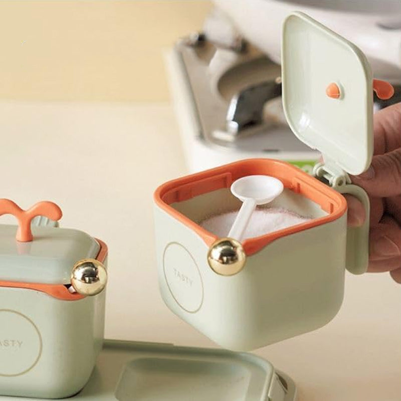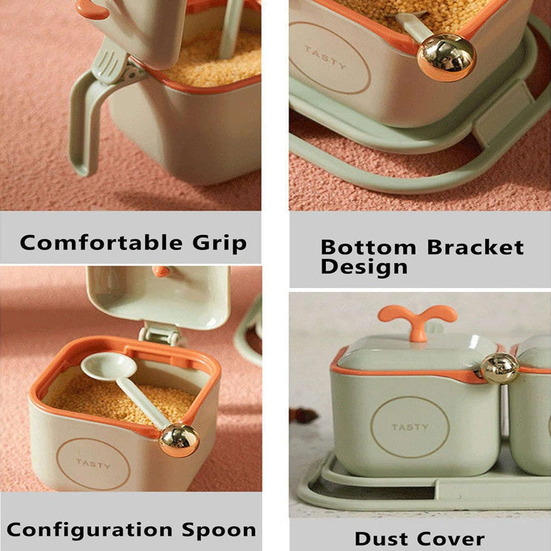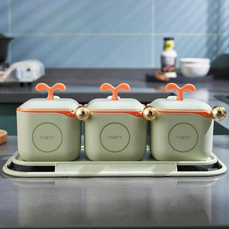 - 3 compartment condiment dispensers and 3 serving spoons included, with a non-slip tray to protect all seasoning box. Easy to remove and wash.